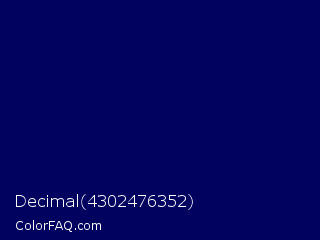 Decimal 4302476352 Color is a very dark blue color and the nearest color is Gulf Blue #051657. Hex code #010260 and RGB value is rgb(1,2,96). In RGB color space, this color is composed of 0% red, 1% green, 38% blue, In CMYK color space, this color is composed of 99% cyan, 98% magenta, 0% yellow , 62% black , In HSL color space, this color has a hue angle of 239° , 98% saturation and 19% lightness.