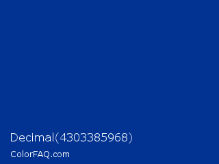 Decimal 4303385968 Color is a dark blue color and the nearest color is Air Force Blue USAF #00308f. Hex code #023392 and RGB value is rgb(2,51,146). In RGB color space, this color is composed of 1% red, 20% green, 57% blue, In CMYK color space, this color is composed of 99% cyan, 65% magenta, 0% yellow , 43% black , In HSL color space, this color has a hue angle of 220° , 97% saturation and 29% lightness.
