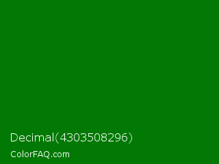 Decimal 4303508296 Color is a dark green color and the nearest color is Office Green #008000. Hex code #027904 and RGB value is rgb(2,121,4). In RGB color space, this color is composed of 1% red, 47% green, 2% blue, In CMYK color space, this color is composed of 98% cyan, 0% magenta, 97% yellow , 53% black , In HSL color space, this color has a hue angle of 121° , 97% saturation and 24% lightness.