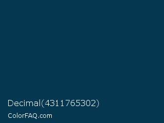 Decimal 4311765302 Color is a very dark blue color and the nearest color is Tarawera #073a50. Hex code #053750 and RGB value is rgb(5,55,80). In RGB color space, this color is composed of 2% red, 22% green, 31% blue, In CMYK color space, this color is composed of 94% cyan, 31% magenta, 0% yellow , 69% black , In HSL color space, this color has a hue angle of 200° , 88% saturation and 17% lightness.