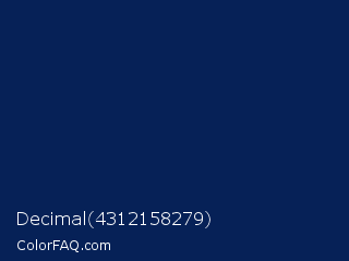 Decimal 4312158279 Color is a very dark blue color and the nearest color is Downriver #092256. Hex code #062157 and RGB value is rgb(6,33,87). In RGB color space, this color is composed of 2% red, 13% green, 34% blue, In CMYK color space, this color is composed of 93% cyan, 62% magenta, 0% yellow , 66% black , In HSL color space, this color has a hue angle of 220° , 87% saturation and 18% lightness.