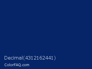 Decimal 4312162441 Color is a very dark blue color and the nearest color is Deep Sapphire #082567. Hex code #062569 and RGB value is rgb(6,37,105). In RGB color space, this color is composed of 2% red, 15% green, 41% blue, In CMYK color space, this color is composed of 94% cyan, 65% magenta, 0% yellow , 59% black , In HSL color space, this color has a hue angle of 221° , 89% saturation and 22% lightness.