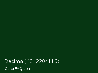 Decimal 4312204116 Color is a very dark green color and the nearest color is County Green #01371a. Hex code #063612 and RGB value is rgb(6,54,18). In RGB color space, this color is composed of 2% red, 21% green, 7% blue, In CMYK color space, this color is composed of 89% cyan, 0% magenta, 67% yellow , 79% black , In HSL color space, this color has a hue angle of 135° , 80% saturation and 12% lightness.