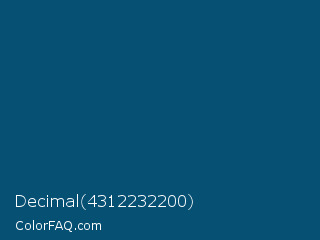 Decimal 4312232200 Color is a dark blue color and the nearest color is Dark Cerulean #08457e. Hex code #065074 and RGB value is rgb(6,80,116). In RGB color space, this color is composed of 2% red, 31% green, 45% blue, In CMYK color space, this color is composed of 95% cyan, 31% magenta, 0% yellow , 55% black , In HSL color space, this color has a hue angle of 200° , 90% saturation and 24% lightness.