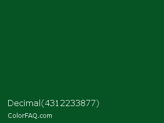 Decimal 4312233877 Color is a very dark green color and the nearest color is Camarone #00581a. Hex code #065323 and RGB value is rgb(6,83,35). In RGB color space, this color is composed of 2% red, 33% green, 14% blue, In CMYK color space, this color is composed of 93% cyan, 0% magenta, 58% yellow , 67% black , In HSL color space, this color has a hue angle of 143° , 87% saturation and 17% lightness.