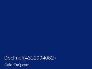 Decimal 4312994082 Color is a dark blue color and the nearest color is Catalina Blue #062a78. Hex code #072372 and RGB value is rgb(7,35,114). In RGB color space, this color is composed of 3% red, 14% green, 45% blue, In CMYK color space, this color is composed of 94% cyan, 69% magenta, 0% yellow , 55% black , In HSL color space, this color has a hue angle of 224° , 88% saturation and 24% lightness.