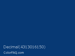 Decimal 4313016150 Color is a dark blue color and the nearest color is Regal Blue #013f6a. Hex code #073974 and RGB value is rgb(7,57,116). In RGB color space, this color is composed of 3% red, 22% green, 45% blue, In CMYK color space, this color is composed of 94% cyan, 51% magenta, 0% yellow , 55% black , In HSL color space, this color has a hue angle of 212° , 89% saturation and 24% lightness.