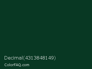 Decimal 4313848149 Color is a very dark green color and the nearest color is Bottle Green #093624. Hex code #083823 and RGB value is rgb(8,56,35). In RGB color space, this color is composed of 3% red, 22% green, 14% blue, In CMYK color space, this color is composed of 86% cyan, 0% magenta, 38% yellow , 78% black , In HSL color space, this color has a hue angle of 154° , 75% saturation and 13% lightness.