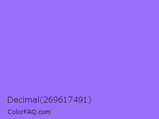Decimal 269617491 Color is a light indigo color and the nearest color is Navy Purple #9457eb. Hex code #9a6ef9 and RGB value is rgb(154,110,249). In RGB color space, this color is composed of 60% red, 43% green, 98% blue, In CMYK color space, this color is composed of 38% cyan, 56% magenta, 0% yellow , 2% black , In HSL color space, this color has a hue angle of 259° , 92% saturation and 70% lightness.