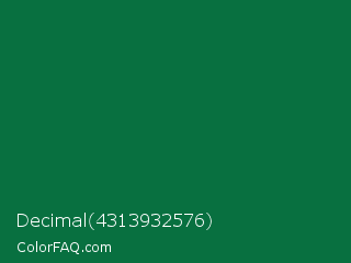 Decimal 4313932576 Color is a dark green color and the nearest color is Dartmouth Green #00703c. Hex code #087040 and RGB value is rgb(8,112,64). In RGB color space, this color is composed of 3% red, 44% green, 25% blue, In CMYK color space, this color is composed of 93% cyan, 0% magenta, 43% yellow , 56% black , In HSL color space, this color has a hue angle of 152° , 87% saturation and 24% lightness.