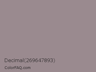 Decimal 269647893 Color is a normal rose color and the nearest color is Venus #928590. Hex code #9a8a8f and RGB value is rgb(154,138,143). In RGB color space, this color is composed of 60% red, 54% green, 56% blue, In CMYK color space, this color is composed of 0% cyan, 10% magenta, 7% yellow , 40% black , In HSL color space, this color has a hue angle of 341° , 7% saturation and 57% lightness.