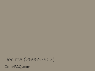 Decimal 269653907 Color is a normal orange color and the nearest color is Gurkha #9a9577. Hex code #9a9181 and RGB value is rgb(154,145,129). In RGB color space, this color is composed of 60% red, 57% green, 51% blue, In CMYK color space, this color is composed of 0% cyan, 6% magenta, 16% yellow , 40% black , In HSL color space, this color has a hue angle of 38° , 11% saturation and 55% lightness.
