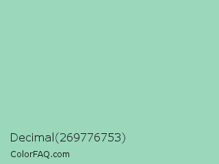 Decimal 269776753 Color is a light green color and the nearest color is Turquoise Green #a0d6b4. Hex code #9ad7bb and RGB value is rgb(154,215,187). In RGB color space, this color is composed of 60% red, 84% green, 73% blue, In CMYK color space, this color is composed of 28% cyan, 0% magenta, 13% yellow , 16% black , In HSL color space, this color has a hue angle of 152° , 43% saturation and 72% lightness.