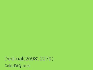 Decimal 269812279 Color is a light green color and the nearest color is Conifer #acdd4d. Hex code #9ae15d and RGB value is rgb(154,225,93). In RGB color space, this color is composed of 60% red, 88% green, 36% blue, In CMYK color space, this color is composed of 32% cyan, 0% magenta, 59% yellow , 12% black , In HSL color space, this color has a hue angle of 92° , 69% saturation and 62% lightness.