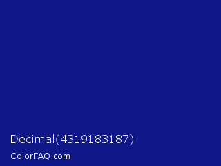 Decimal 4319183187 Color is a dark blue color and the nearest color is Indigo Dye #091f92. Hex code #101889 and RGB value is rgb(16,24,137). In RGB color space, this color is composed of 6% red, 9% green, 54% blue, In CMYK color space, this color is composed of 88% cyan, 82% magenta, 0% yellow , 46% black , In HSL color space, this color has a hue angle of 236° , 79% saturation and 30% lightness.