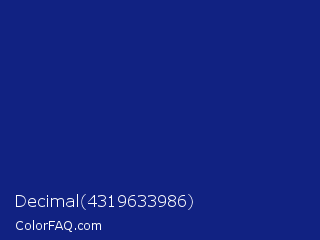 Decimal 4319633986 Color is a dark blue color and the nearest color is Catalina Blue #062a78. Hex code #112282 and RGB value is rgb(17,34,130). In RGB color space, this color is composed of 7% red, 13% green, 51% blue, In CMYK color space, this color is composed of 87% cyan, 74% magenta, 0% yellow , 49% black , In HSL color space, this color has a hue angle of 231° , 77% saturation and 29% lightness.