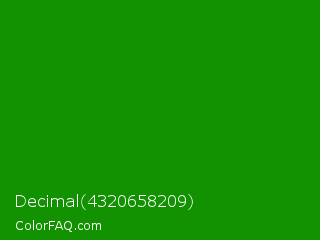 Decimal 4320658209 Color is a dark green color and the nearest color is India Green #138808. Hex code #129201 and RGB value is rgb(18,146,1). In RGB color space, this color is composed of 7% red, 57% green, 0% blue, In CMYK color space, this color is composed of 88% cyan, 0% magenta, 99% yellow , 43% black , In HSL color space, this color has a hue angle of 113° , 99% saturation and 29% lightness.