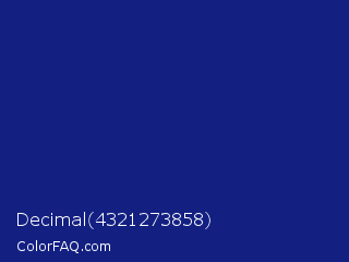 Decimal 4321273858 Color is a dark blue color and the nearest color is Jacksons Purple #20208d. Hex code #132082 and RGB value is rgb(19,32,130). In RGB color space, this color is composed of 7% red, 13% green, 51% blue, In CMYK color space, this color is composed of 85% cyan, 75% magenta, 0% yellow , 49% black , In HSL color space, this color has a hue angle of 233° , 74% saturation and 29% lightness.