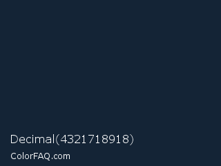 Decimal 4321718918 Color is a very dark blue color and the nearest color is Firefly #0e2a30. Hex code #142436 and RGB value is rgb(20,36,54). In RGB color space, this color is composed of 8% red, 14% green, 21% blue, In CMYK color space, this color is composed of 63% cyan, 33% magenta, 0% yellow , 79% black , In HSL color space, this color has a hue angle of 212° , 46% saturation and 15% lightness.