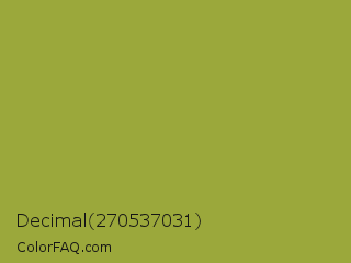 Decimal 270537031 Color is a normal yellow color and the nearest color is Sushi #87ab39. Hex code #9ba83b and RGB value is rgb(155,168,59). In RGB color space, this color is composed of 61% red, 66% green, 23% blue, In CMYK color space, this color is composed of 8% cyan, 0% magenta, 65% yellow , 34% black , In HSL color space, this color has a hue angle of 67° , 48% saturation and 45% lightness.