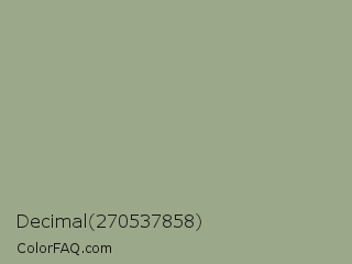 Decimal 270537858 Color is a normal green color and the nearest color is Sage #9ea587. Hex code #9ba98a and RGB value is rgb(155,169,138). In RGB color space, this color is composed of 61% red, 66% green, 54% blue, In CMYK color space, this color is composed of 8% cyan, 0% magenta, 18% yellow , 34% black , In HSL color space, this color has a hue angle of 87° , 15% saturation and 60% lightness.