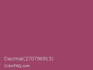 Decimal 270796913 Color is a normal rose color and the nearest color is Vin Rouge #983d61. Hex code #9c4367 and RGB value is rgb(156,67,103). In RGB color space, this color is composed of 61% red, 26% green, 40% blue, In CMYK color space, this color is composed of 0% cyan, 57% magenta, 34% yellow , 39% black , In HSL color space, this color has a hue angle of 336° , 40% saturation and 44% lightness.