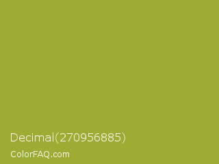 Decimal 270956885 Color is a normal yellow color and the nearest color is Citron #9fa91f. Hex code #9cad33 and RGB value is rgb(156,173,51). In RGB color space, this color is composed of 61% red, 68% green, 20% blue, In CMYK color space, this color is composed of 10% cyan, 0% magenta, 71% yellow , 32% black , In HSL color space, this color has a hue angle of 68° , 54% saturation and 44% lightness.