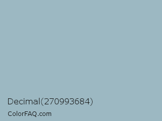 Decimal 270993684 Color is a light blue color and the nearest color is Rock Blue #9eb1cd. Hex code #9cb8c2 and RGB value is rgb(156,184,194). In RGB color space, this color is composed of 61% red, 72% green, 76% blue, In CMYK color space, this color is composed of 20% cyan, 5% magenta, 0% yellow , 24% black , In HSL color space, this color has a hue angle of 196° , 24% saturation and 69% lightness.