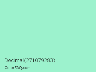 Decimal 271079283 Color is a light green color and the nearest color is Magic Mint #aaf0d1. Hex code #9cf2cd and RGB value is rgb(156,242,205). In RGB color space, this color is composed of 61% red, 95% green, 80% blue, In CMYK color space, this color is composed of 36% cyan, 0% magenta, 15% yellow , 5% black , In HSL color space, this color has a hue angle of 154° , 77% saturation and 78% lightness.