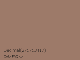 Decimal 271713417 Color is a normal orange color and the nearest color is Beaver #9f8170. Hex code #9d7a69 and RGB value is rgb(157,122,105). In RGB color space, this color is composed of 62% red, 48% green, 41% blue, In CMYK color space, this color is composed of 0% cyan, 22% magenta, 33% yellow , 38% black , In HSL color space, this color has a hue angle of 20° , 21% saturation and 51% lightness.