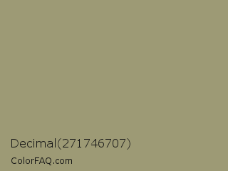 Decimal 271746707 Color is a normal yellow color and the nearest color is Gurkha #9a9577. Hex code #9d9a75 and RGB value is rgb(157,154,117). In RGB color space, this color is composed of 62% red, 60% green, 46% blue, In CMYK color space, this color is composed of 0% cyan, 2% magenta, 25% yellow , 38% black , In HSL color space, this color has a hue angle of 56° , 17% saturation and 54% lightness.