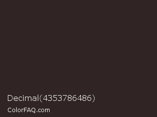 Decimal 4353786486 Color is a very dark red color and the nearest color is Cocoa Brown #301f1e. Hex code #302424 and RGB value is rgb(48,36,36). In RGB color space, this color is composed of 19% red, 14% green, 14% blue, In CMYK color space, this color is composed of 0% cyan, 25% magenta, 25% yellow , 81% black , In HSL color space, this color has a hue angle of 0° , 14% saturation and 16% lightness.