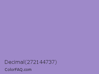 Decimal 272144737 Color is a light indigo color and the nearest color is East Side #ac91ce. Hex code #9e89c9 and RGB value is rgb(158,137,201). In RGB color space, this color is composed of 62% red, 54% green, 79% blue, In CMYK color space, this color is composed of 21% cyan, 32% magenta, 0% yellow , 21% black , In HSL color space, this color has a hue angle of 260° , 37% saturation and 66% lightness.