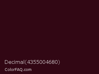 Decimal 4355004680 Color is a very dark rose color and the nearest color is Aubergine #3b0910. Hex code #320714 and RGB value is rgb(50,7,20). In RGB color space, this color is composed of 20% red, 3% green, 8% blue, In CMYK color space, this color is composed of 0% cyan, 86% magenta, 60% yellow , 80% black , In HSL color space, this color has a hue angle of 342° , 75% saturation and 11% lightness.