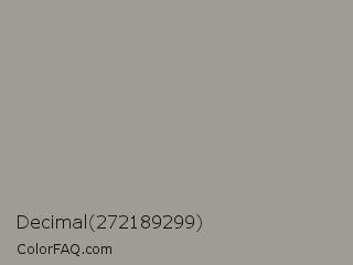Decimal 272189299 Color is a normal yellow color and the nearest color is Lemon Grass #9b9e8f. Hex code #9e9c95 and RGB value is rgb(158,156,149). In RGB color space, this color is composed of 62% red, 61% green, 58% blue, In CMYK color space, this color is composed of 0% cyan, 1% magenta, 6% yellow , 38% black , In HSL color space, this color has a hue angle of 47° , 4% saturation and 60% lightness.