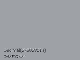 Decimal 273028614 Color is a light blue color and the nearest color is Quick Silver #a6a6a6. Hex code #9fa1a6 and RGB value is rgb(159,161,166). In RGB color space, this color is composed of 62% red, 63% green, 65% blue, In CMYK color space, this color is composed of 4% cyan, 3% magenta, 0% yellow , 35% black , In HSL color space, this color has a hue angle of 223° , 4% saturation and 64% lightness.