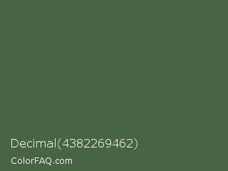 Decimal 4382269462 Color is a normal green color and the nearest color is Axolotl #4e6649. Hex code #476440 and RGB value is rgb(71,100,64). In RGB color space, this color is composed of 28% red, 39% green, 25% blue, In CMYK color space, this color is composed of 29% cyan, 0% magenta, 36% yellow , 61% black , In HSL color space, this color has a hue angle of 108° , 22% saturation and 32% lightness.