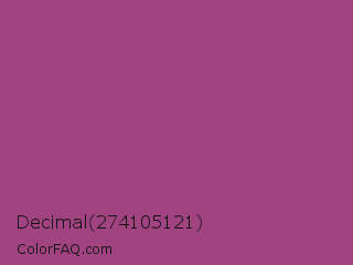Decimal 274105121 Color is a normal magenta color and the nearest color is Magenta Haze #9f4576. Hex code #a14281 and RGB value is rgb(161,66,129). In RGB color space, this color is composed of 63% red, 26% green, 51% blue, In CMYK color space, this color is composed of 0% cyan, 59% magenta, 20% yellow , 37% black , In HSL color space, this color has a hue angle of 320° , 42% saturation and 45% lightness.