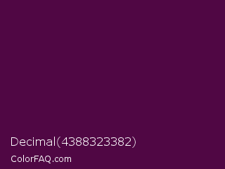 Decimal 4388323382 Color is a very dark magenta color and the nearest color is Loulou #460b41. Hex code #500744 and RGB value is rgb(80,7,68). In RGB color space, this color is composed of 31% red, 3% green, 27% blue, In CMYK color space, this color is composed of 0% cyan, 91% magenta, 15% yellow , 69% black , In HSL color space, this color has a hue angle of 310° , 84% saturation and 17% lightness.