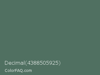 Decimal 4388505925 Color is a normal green color and the nearest color is Finlandia #556d56. Hex code #507061 and RGB value is rgb(80,112,97). In RGB color space, this color is composed of 31% red, 44% green, 38% blue, In CMYK color space, this color is composed of 29% cyan, 0% magenta, 13% yellow , 56% black , In HSL color space, this color has a hue angle of 152° , 17% saturation and 38% lightness.