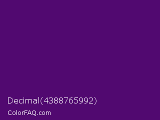 Decimal 4388765992 Color is a dark purple color and the nearest color is Honey Flower #4f1c70. Hex code #510970 and RGB value is rgb(81,9,112). In RGB color space, this color is composed of 32% red, 4% green, 44% blue, In CMYK color space, this color is composed of 28% cyan, 92% magenta, 0% yellow , 56% black , In HSL color space, this color has a hue angle of 282° , 85% saturation and 24% lightness.