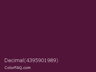 Decimal 4395901989 Color is a very dark magenta color and the nearest color is Wine Berry #591d35. Hex code #521439 and RGB value is rgb(82,20,57). In RGB color space, this color is composed of 32% red, 8% green, 22% blue, In CMYK color space, this color is composed of 0% cyan, 76% magenta, 30% yellow , 68% black , In HSL color space, this color has a hue angle of 324° , 61% saturation and 20% lightness.