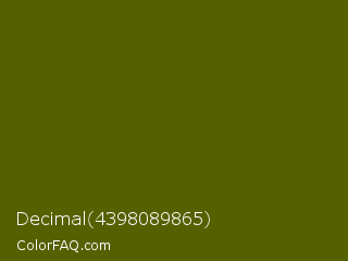 Decimal 4398089865 Color is a very dark yellow color and the nearest color is Saratoga #555b10. Hex code #556101 and RGB value is rgb(85,97,1). In RGB color space, this color is composed of 33% red, 38% green, 0% blue, In CMYK color space, this color is composed of 12% cyan, 0% magenta, 99% yellow , 62% black , In HSL color space, this color has a hue angle of 68° , 98% saturation and 19% lightness.