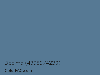 Decimal 4398974230 Color is a normal blue color and the nearest color is Smalt Blue #51808f. Hex code #567994 and RGB value is rgb(86,121,148). In RGB color space, this color is composed of 34% red, 47% green, 58% blue, In CMYK color space, this color is composed of 42% cyan, 18% magenta, 0% yellow , 42% black , In HSL color space, this color has a hue angle of 206° , 26% saturation and 46% lightness.