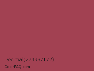 Decimal 274937172 Color is a normal red color and the nearest color is English Red #ab4b52. Hex code #a24152 and RGB value is rgb(162,65,82). In RGB color space, this color is composed of 64% red, 25% green, 32% blue, In CMYK color space, this color is composed of 0% cyan, 60% magenta, 49% yellow , 36% black , In HSL color space, this color has a hue angle of 349° , 43% saturation and 45% lightness.