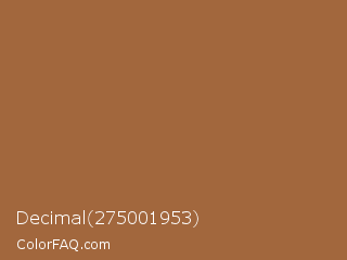 Decimal 275001953 Color is a normal orange color and the nearest color is Cape Palliser #a26645. Hex code #a2673d and RGB value is rgb(162,103,61). In RGB color space, this color is composed of 64% red, 40% green, 24% blue, In CMYK color space, this color is composed of 0% cyan, 36% magenta, 62% yellow , 36% black , In HSL color space, this color has a hue angle of 25° , 45% saturation and 44% lightness.