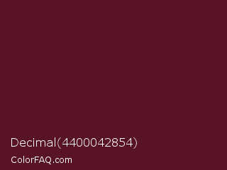 Decimal 4400042854 Color is a very dark rose color and the nearest color is Maroon Oak #520c17. Hex code #581326 and RGB value is rgb(88,19,38). In RGB color space, this color is composed of 35% red, 7% green, 15% blue, In CMYK color space, this color is composed of 0% cyan, 78% magenta, 57% yellow , 65% black , In HSL color space, this color has a hue angle of 343° , 64% saturation and 21% lightness.