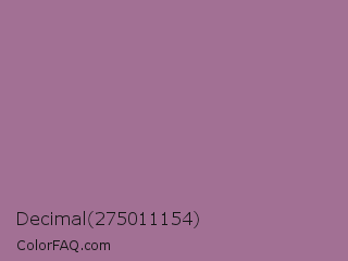 Decimal 275011154 Color is a normal magenta color and the nearest color is Mountbatten Pink #997a8d. Hex code #a27094 and RGB value is rgb(162,112,148). In RGB color space, this color is composed of 64% red, 44% green, 58% blue, In CMYK color space, this color is composed of 0% cyan, 31% magenta, 9% yellow , 36% black , In HSL color space, this color has a hue angle of 317° , 21% saturation and 54% lightness.