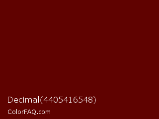 Decimal 4405416548 Color is a very dark red color and the nearest color is Rosewood #65000b. Hex code #600200 and RGB value is rgb(96,2,0). In RGB color space, this color is composed of 38% red, 1% green, 0% blue, In CMYK color space, this color is composed of 0% cyan, 98% magenta, 100% yellow , 62% black , In HSL color space, this color has a hue angle of 1° , 100% saturation and 19% lightness.