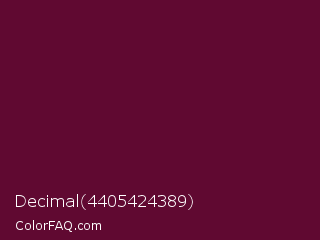 Decimal 4405424389 Color is a very dark rose color and the nearest color is Mulberry Wood #5c0536. Hex code #600931 and RGB value is rgb(96,9,49). In RGB color space, this color is composed of 38% red, 4% green, 19% blue, In CMYK color space, this color is composed of 0% cyan, 91% magenta, 49% yellow , 62% black , In HSL color space, this color has a hue angle of 332° , 83% saturation and 21% lightness.